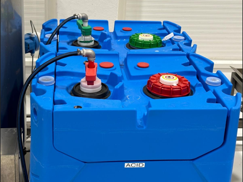The double-walled VARIBOX is available in an EPDM or Viton version depending on the chemicals that will be packed in the container. This will be fully matched to the Safeline system. But of course, the VARIBOX FC is also applicable for other extractor tubes. The full containment IBCs are available in many different colors as blue, dark blue, yellow, orange, green, and natural to match your product coding. Next to that, to be 100% safe the containers are equipped with automatic venting in terms of a pressure relief vent or combi-vent.